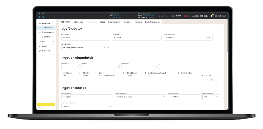 - Kezeli mind a hitelezési folyamatokhoz szükséges értékbecsléseket, a független vagy előzetes értékbecsléseket (ezek később kapcsolhatóak hitelezési folyamatokhoz),