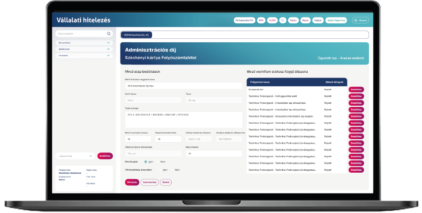 • Könnyen kezelhető felület: mezők üzleti oldal által is paraméterezhetők